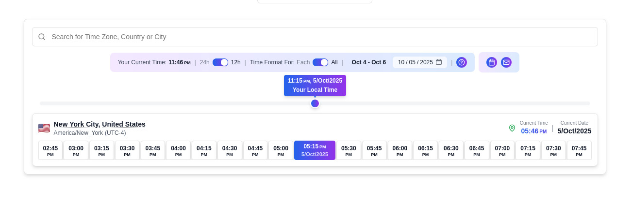 Users can input not just UTC offsets (e.g., UTC+2), but also choose a specific location, making it more intuitive.User-friendly interface.